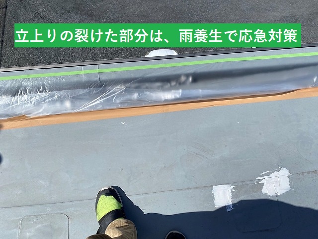 時間がない中の応急処置なので、この部分は養生シートで簡易的に雨養生しました。