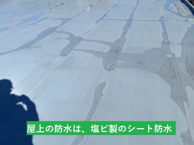 屋上に上がってみると、塩ビのシート防水である事が確認できました。