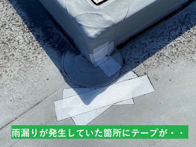 以前から雨漏りが複数回発生したとの情報で、テープで補修してありましたが、状態を確認する為に補修テープを剥がしてみました。