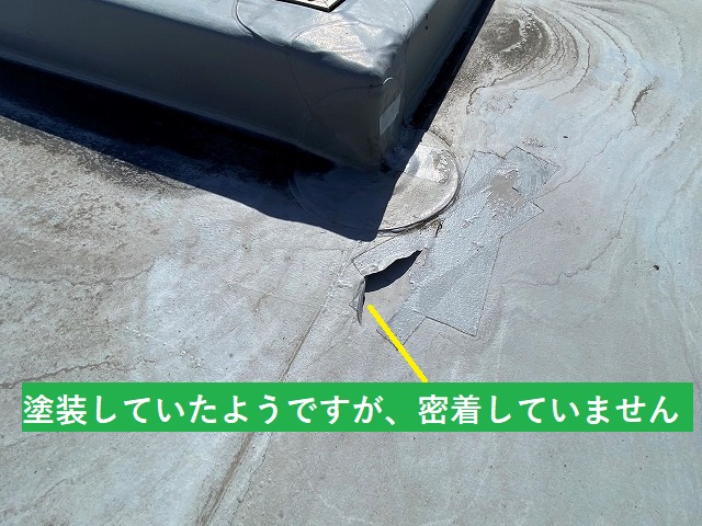 その際に、塩ビ製シート防水にウレタン防水を流したと思われますが、全く密着しておらず、テープと一緒に薄皮のように剥がれてしまいました。