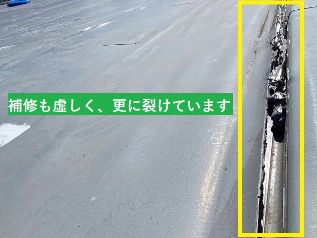 1年前の防水修理で手を加えたようですが、補修もむなしく意味を成していません。