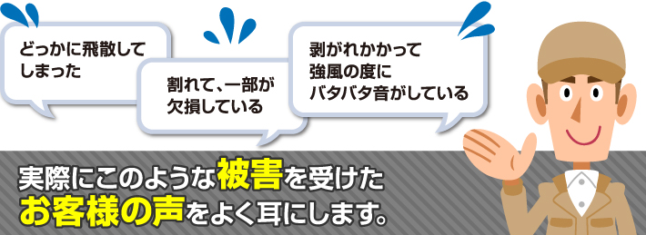 ■ 壊れた屋根材が強風で飛散し人や建物に当たる危険がある