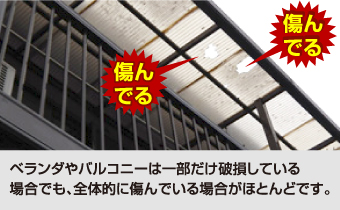 ベランダの屋根は、見た目の破損が小さいうちに修理をお勧めしています!