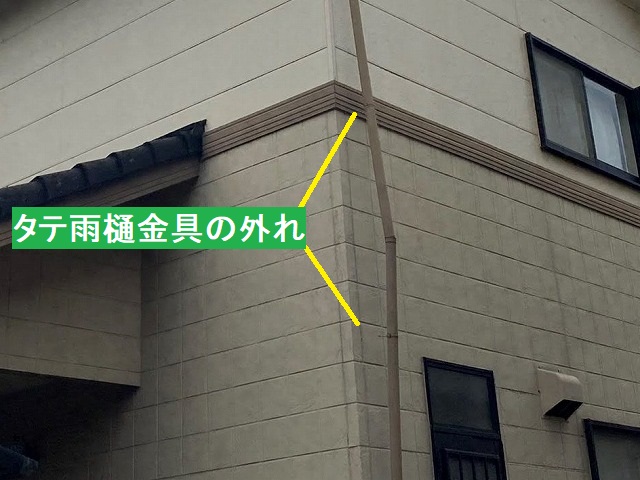 先日、地上から2階の雨樋まで伸びるタテの樋が強風により外れて困っていました。