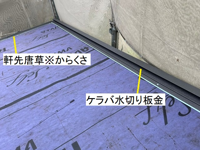 軒先側には軒先唐草板金・ケラバ側にはケラバ水切り板金を設営し、万全な漏水対策を施します。