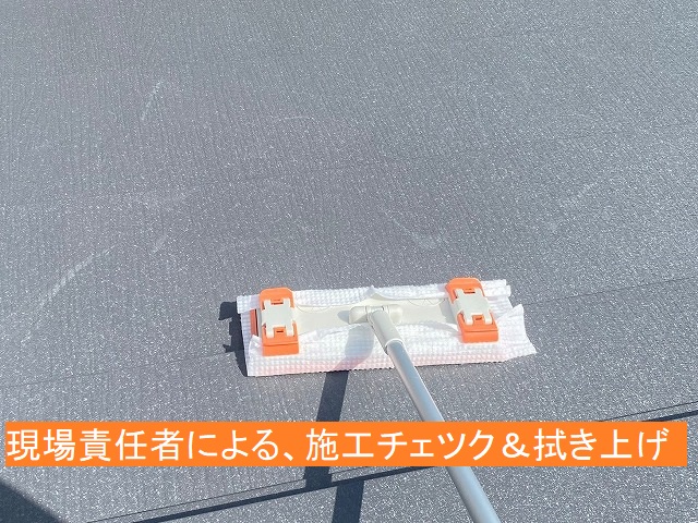 屋根工事を行っている際には、作業靴で作業している為、作業靴の跡が屋根に残っています。