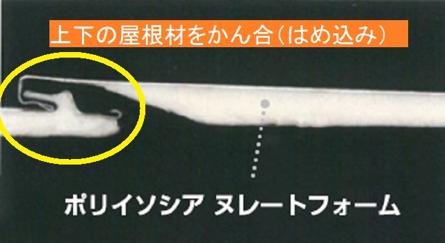 次に、上手方向に重ねる際に、上下のスーパーガルテクトを嵌めこんで嵌合させ屋根を一体化します。