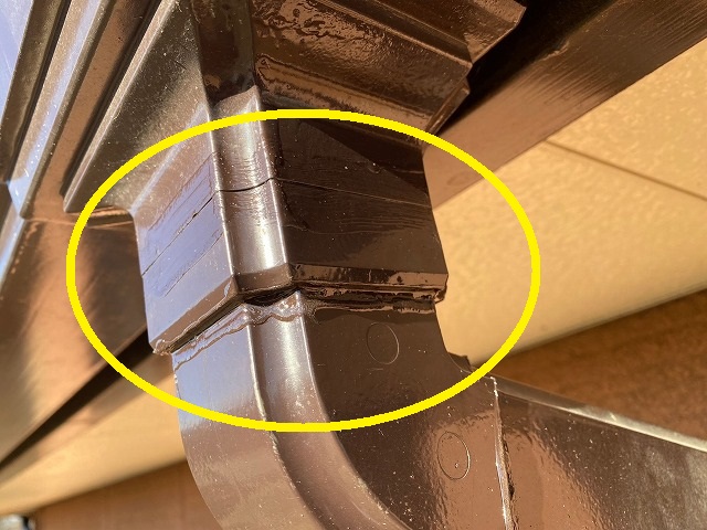 雨樋の継ぎ手部分は、施工時に接着施工を行っていますが、経年劣化によって接着力は弱まります。
