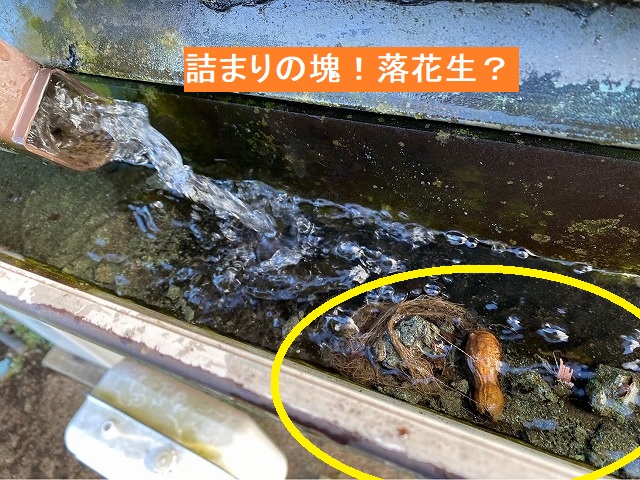 なんと・・・タテ樋の中に詰まっていたのは根っこと落花生?