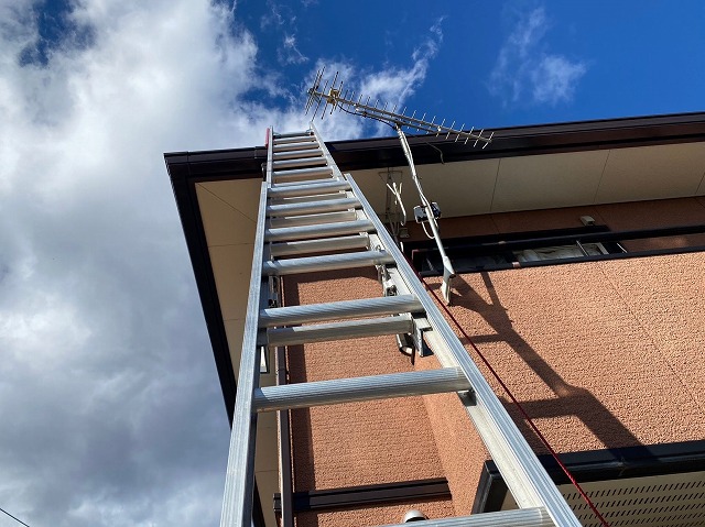 いたってシンプルな作業ですが、二階まで梯子を伸ばし、梯子に乗りながらの清掃作業は危険が伴います。