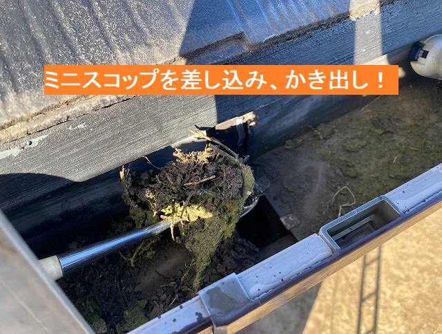 こんな時はミニスコップを差し込み、ほぐしながら少しづつすくって詰まり物を除去していきます。