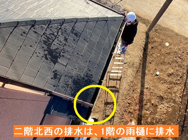 雨樋が詰まってオーバーフローを起こしているので、原因や状況を確認してほしい