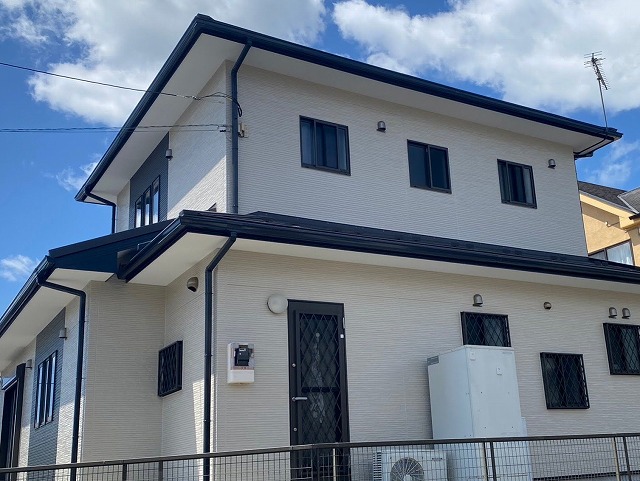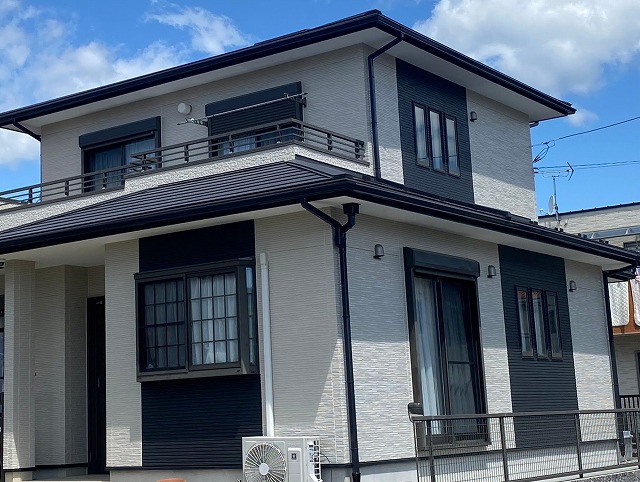 屋根と外壁の配色バランスもバッチリで、『住み始めてから一番綺麗かもしれない』と、お客様より嬉しいお言葉も頂戴する事ができました(^^♪