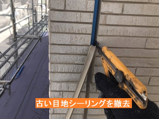 後述で紹介しますが、今回の現場で使用するラジカルシリコン塗料は、比較的柔らかい塗料なので、シーリングを先に充填して塗装する事で、目地シーリングも塗膜で保護され、劣化を軽減する事が期待できます。