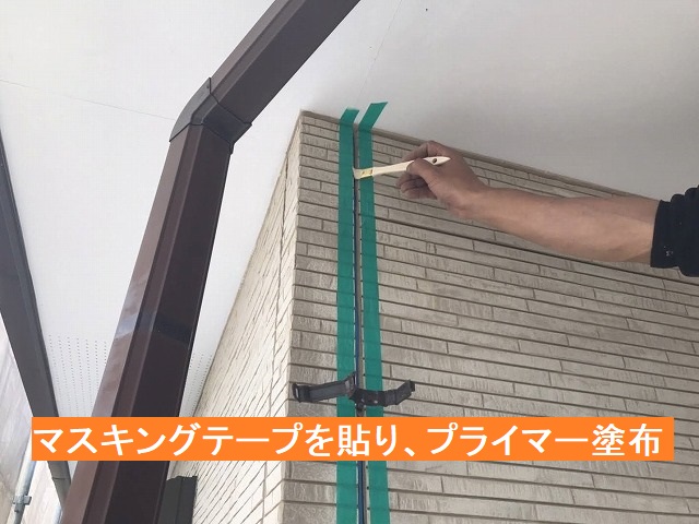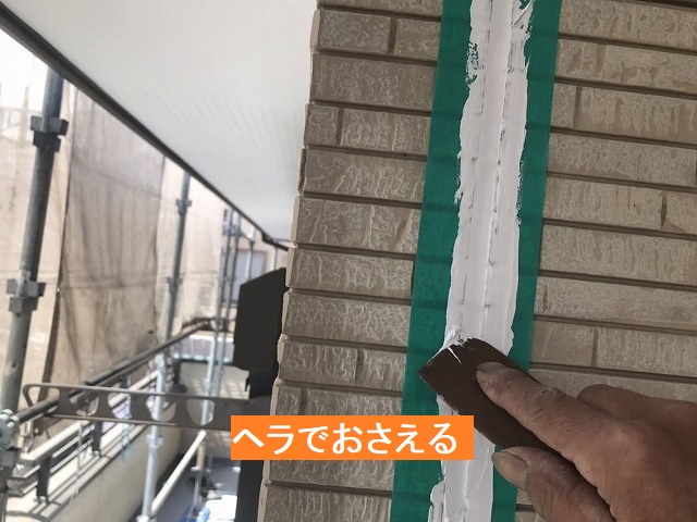 今回は、目地シーリングを先に打設してから外壁塗装を実施する、俗に言う先打ち施工です。