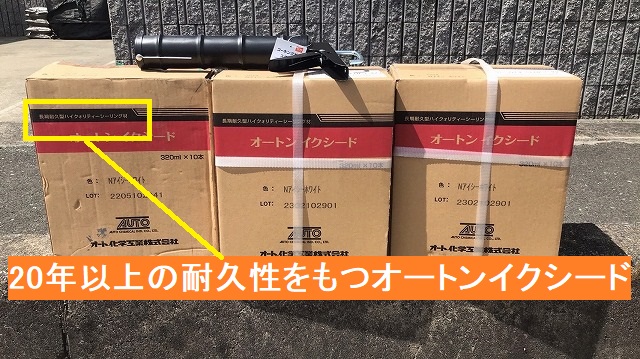 使用するシーリング材は、20年以上の耐久性を誇るオートンイクシードを採用(当店の標準)