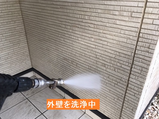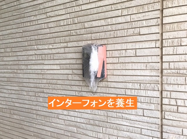高圧洗浄は、付着した汚れを落としつつ古い塗膜を除去し、新たな塗料を基材に直接密着させるための大切な作業!水を使用する為、インターフォンや外電源などは養生してから行います。