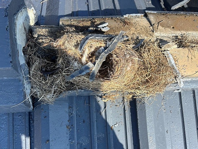 隙間らしい隙間もないのにどうやって入り込んだの?と、スタッフ一同ビックリ!黒い羽が残されていましたが、カラスなどの大型の鳥ではなく、スズメのような小型の鳥が営巣したのでしょう( ´•ᴗ•ก )
