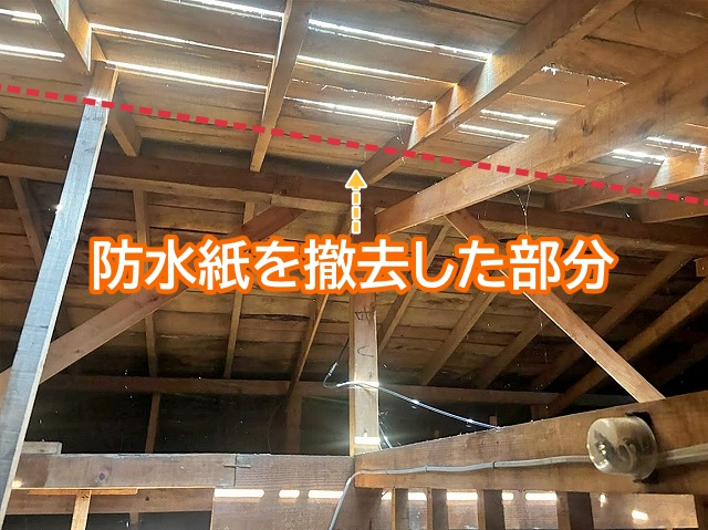 屋根の内部の状況が把握できたので、当初の防水紙の設置計画を若干変更。