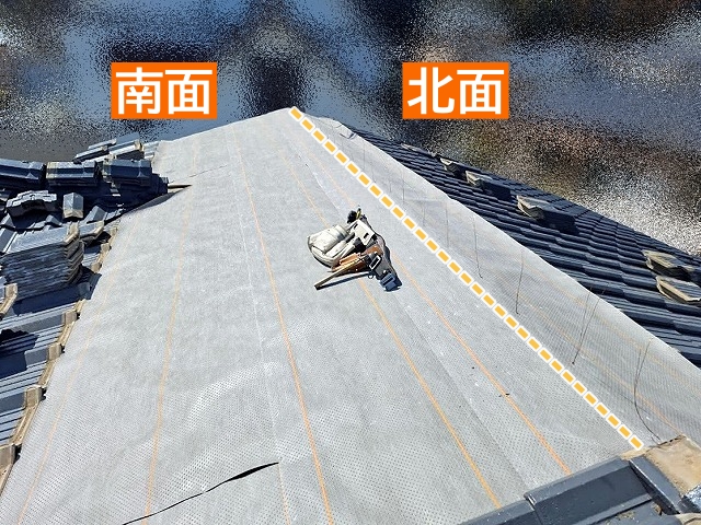 北面に敷設しようと考えていた分を削り、より劣化が進んでいた南面を優先して、防水紙をそちらに多めに配分。最も危険度の高いエリアを重点的に補強する判断を取りました。