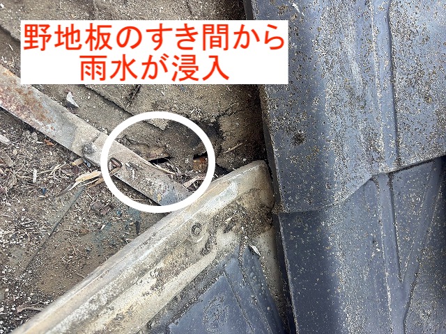 バラ板は通気性を良くするため隙間をあけて設置されているので、防水紙の破損すなわち隙間から雨水が入り放題ということに(@_@;)
