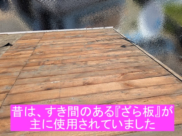 屋根の下地の野地板は、バラ板という30~40年以上前の住宅によく見られたタイプです。