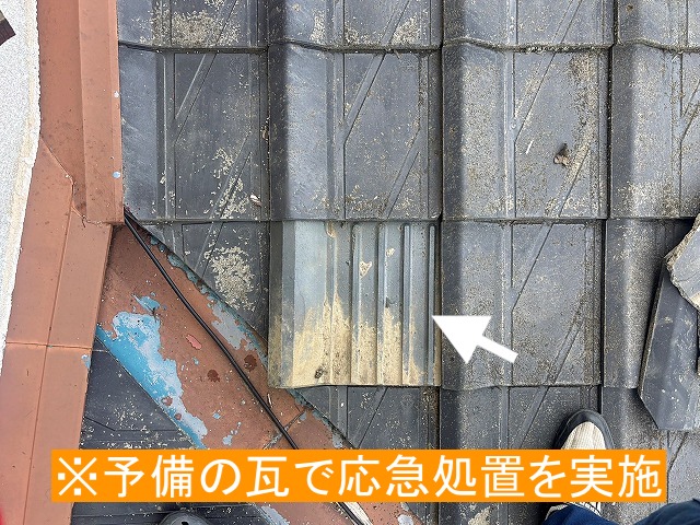 とりあえず応急処置として予備の瓦を差し替えておきました。