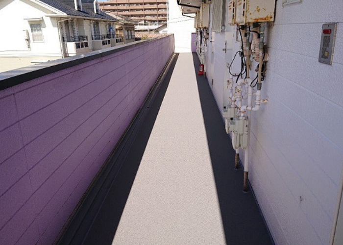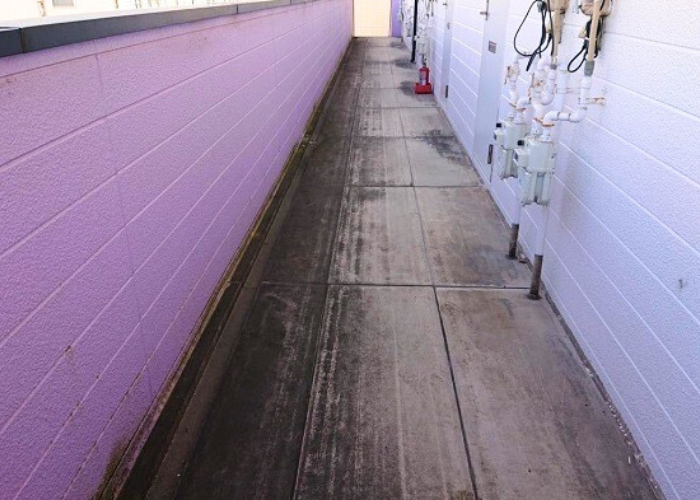 アパートの共用廊下の側溝はウレタン防水で仕上げます