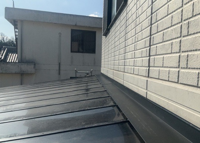 今回の工事では、耐久性・防水性に優れたガルバリウム鋼板で水切りを設置し、建物との接合部をしっかり補修しました。