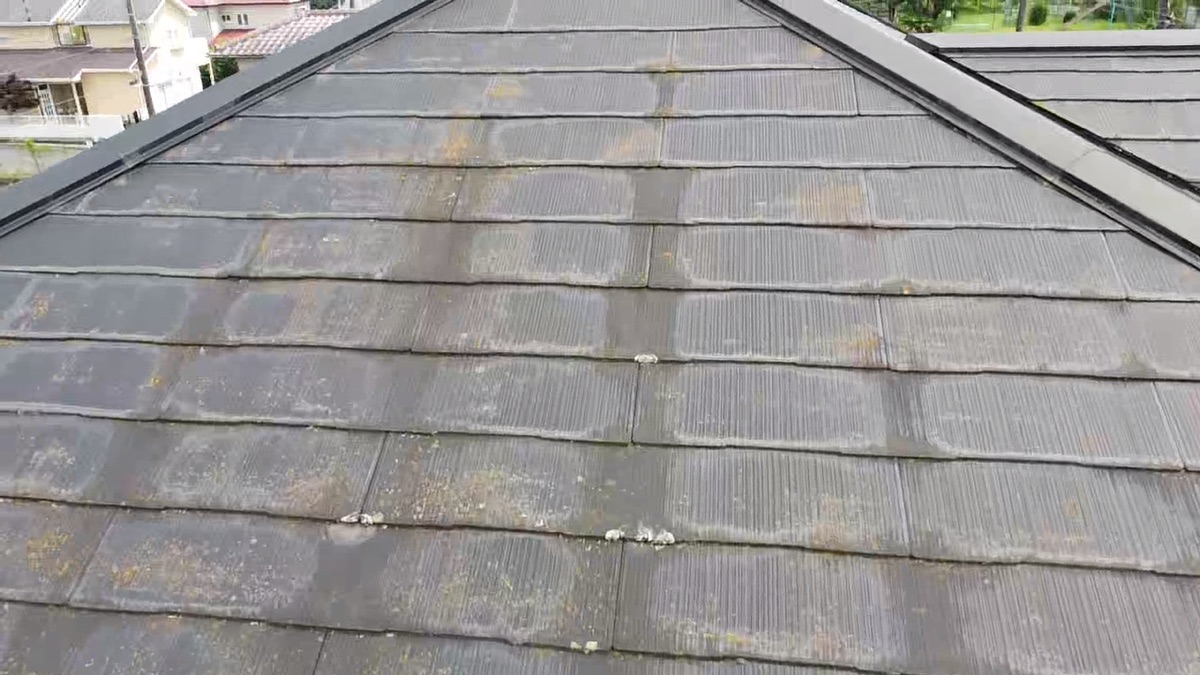 屋根材は、セメントを薄く固めて成型したスレート屋根ですが、