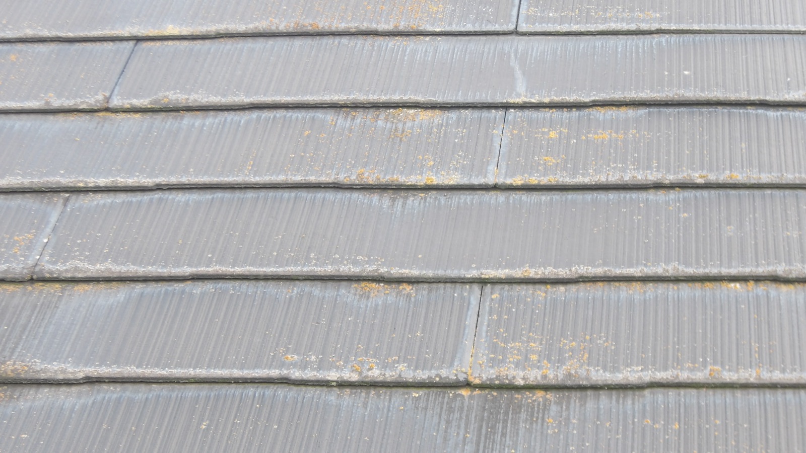 塗膜が劣化すると、雨水が屋根材に染み込みやすくなり、水分が溜まりやすい部分に苔やカビが繁殖します💧