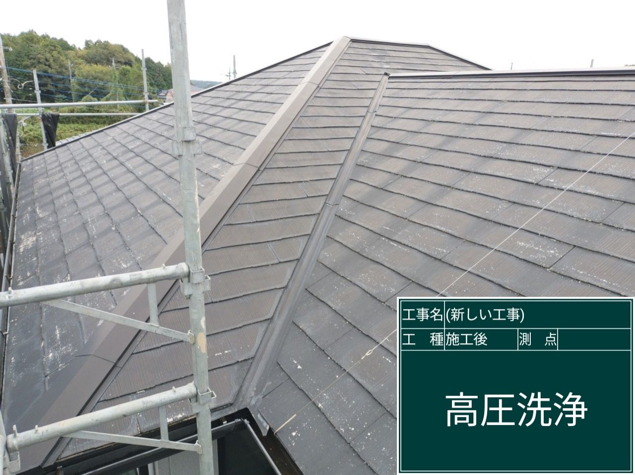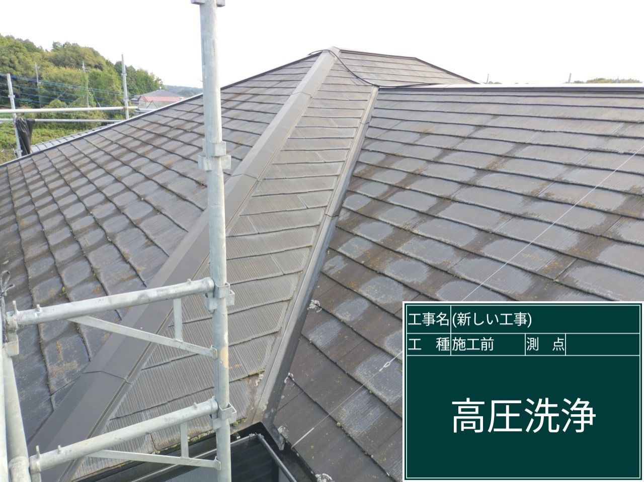 足場を建てたら高圧洗浄で、屋根についた汚れや苔を丁寧に落としていきます🌊✨