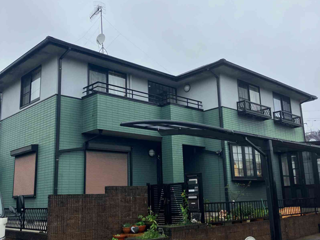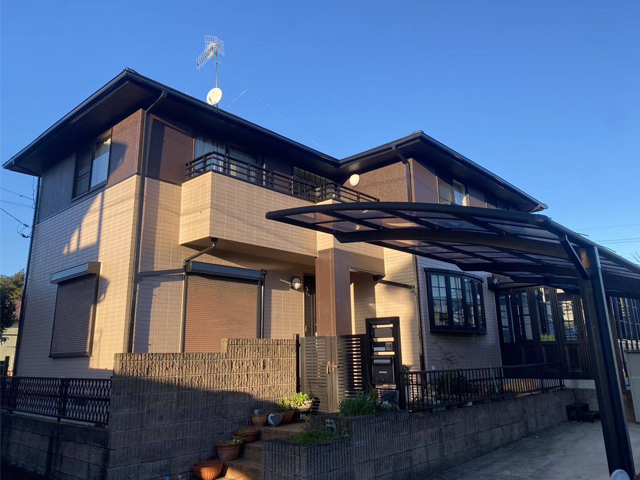 ホーム > かすみがうら市で二階建て直貼り工法の家に遮熱塗装!カラー変更…