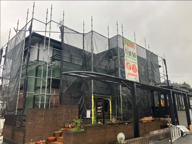 足場があることで、高所作業も安全に、そして丁寧に進めることができます。