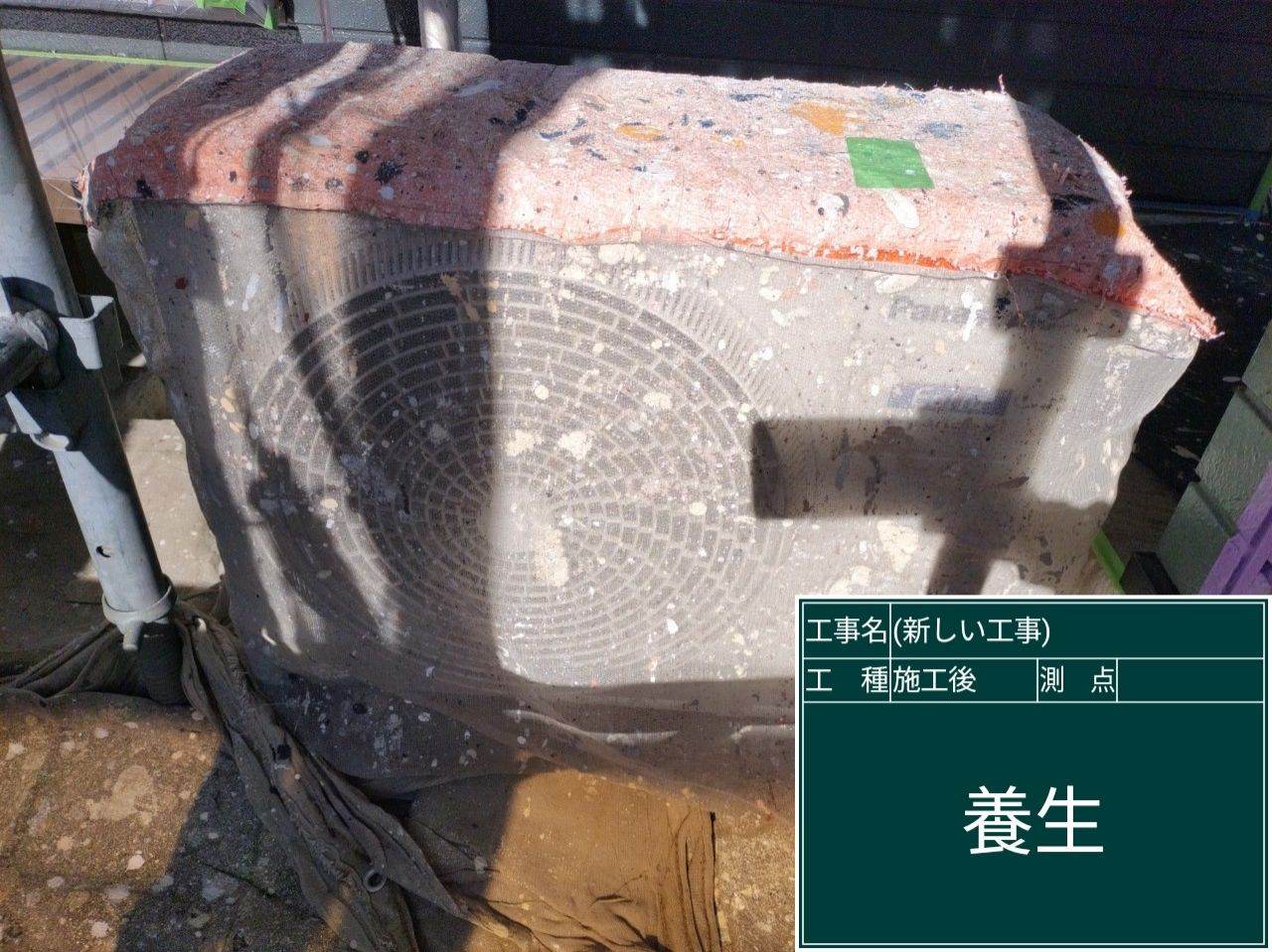 窓やドア、床面、配管、エアコンの室外機などにビニールや養生テープを使ってしっかりと覆い、塗料の飛び散りや汚れを防ぎます✅✨