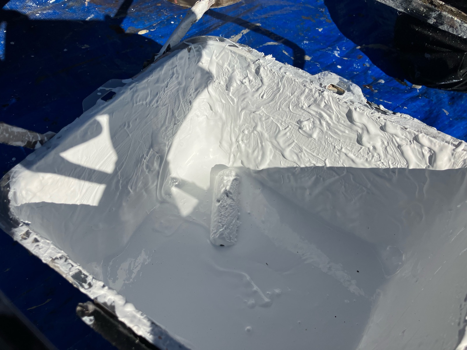 塗装中に使っているローラーの先端部分も、乾き防止のために塗料に浸したまま管理します🎨💡