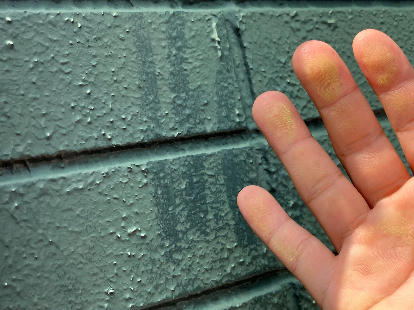 外壁を手で触れてみると、白い粉状のチョーキング現象が確認できました✋💦