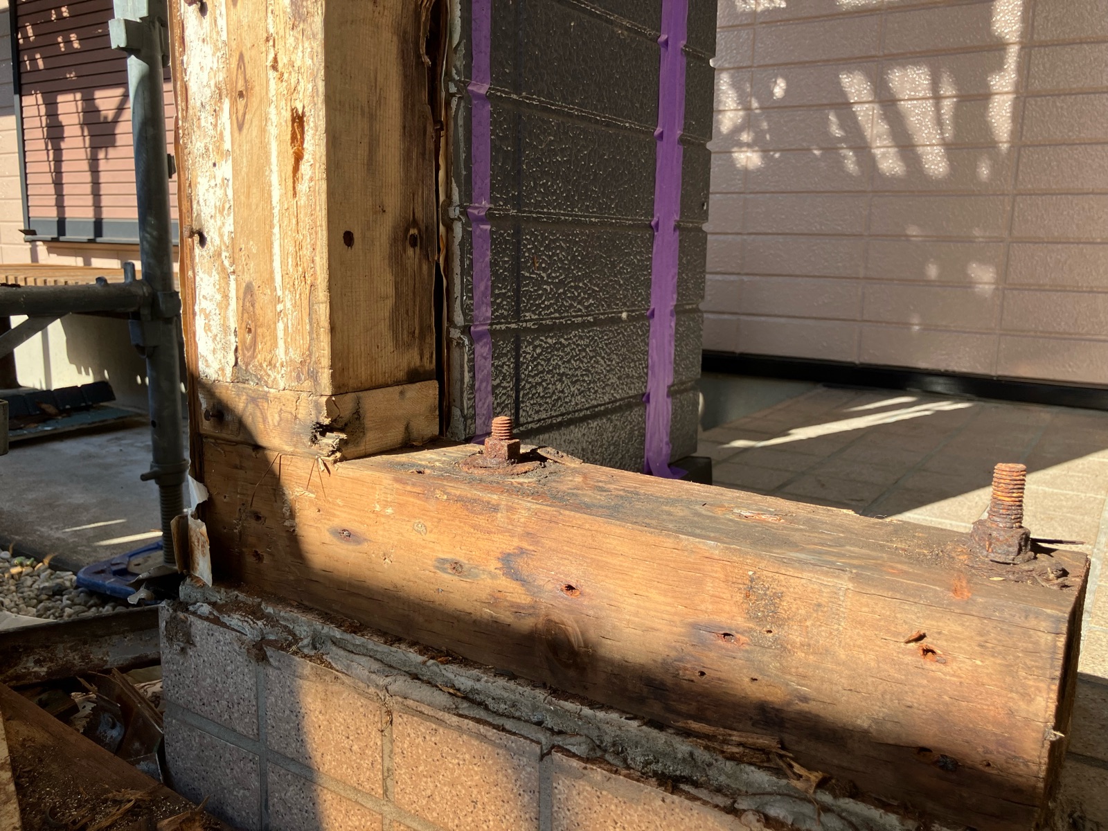 この現場では、以前の施工不良によりベランダの笠木下にある防水シートが正しく施工されておらず、雨漏りが発生していたという状況でした☔