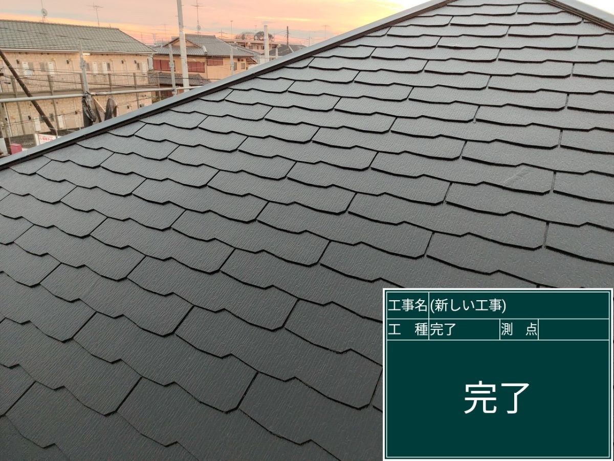 仕上げ工程では、屋根専用の高耐久・遮熱フッ素塗料を使用し、丁寧に2回塗りを実施しました。