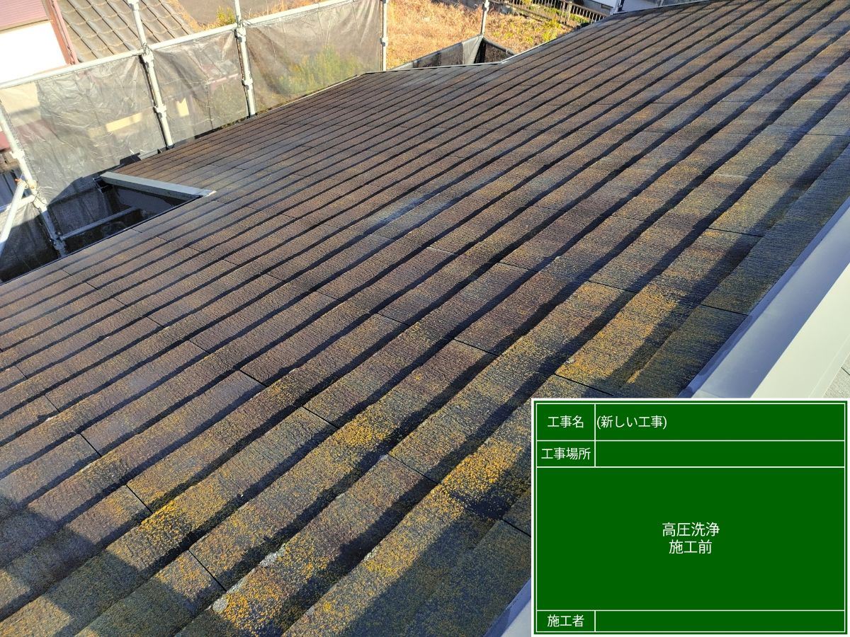 続いて、高圧洗浄機で屋根・外壁・雨どい・付帯部をすみずみまで洗浄していきます🧼