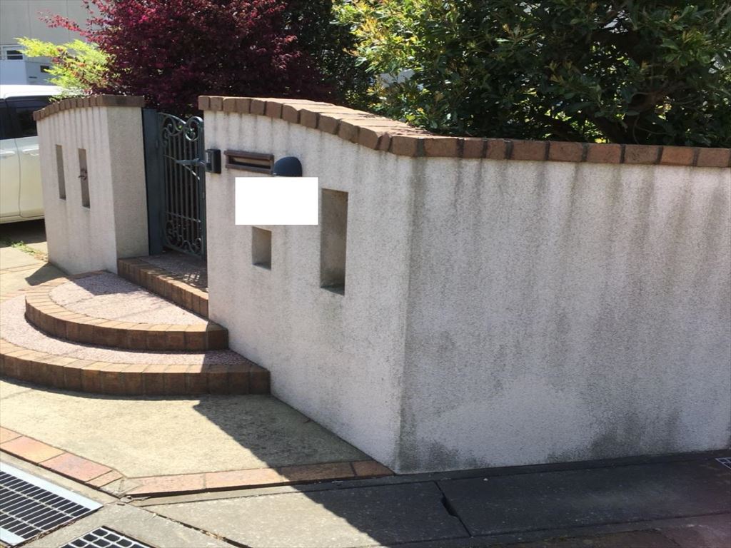まずは高圧洗浄機を使って、塀全体に付着していたコケや汚れを徹底除去しました。