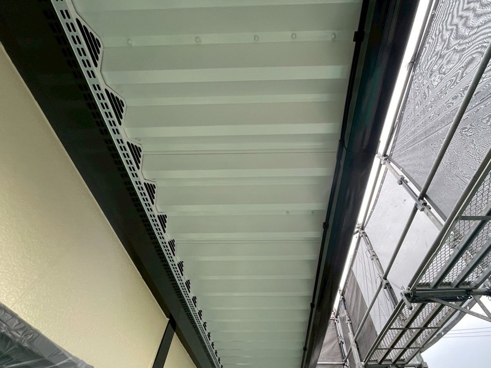 中塗りが進むにつれて軒裏全体が引き締まった印象になり、建物の雰囲気まで明るさが増していきました✨