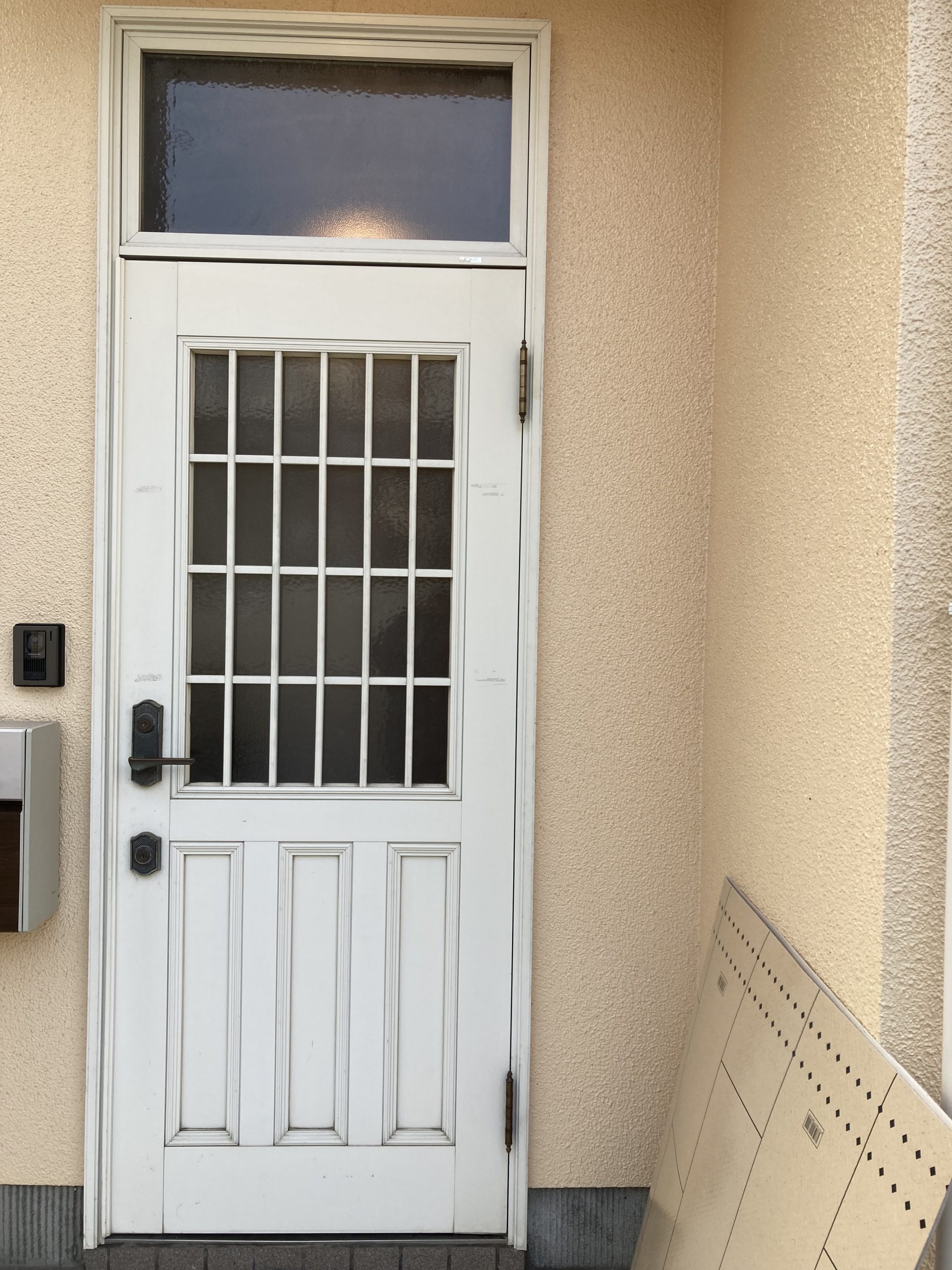 今回は、玄関ドアの色褪せと塗装の剥がれをきっかけに、玄関ドアのカバー工法で交換工事を行いました。