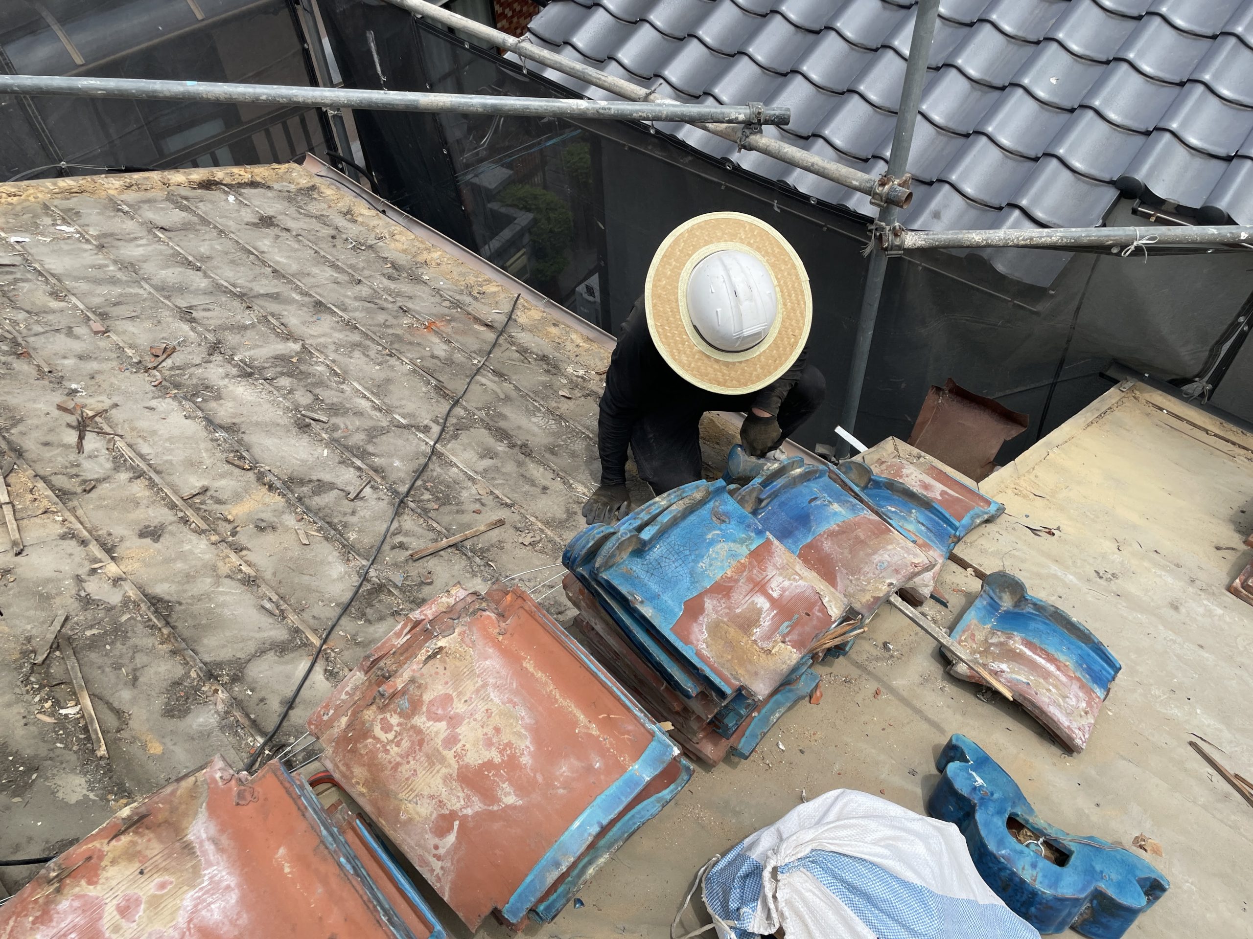 長年使われていた瓦を、1枚ずつ丁寧に取り外していきました。