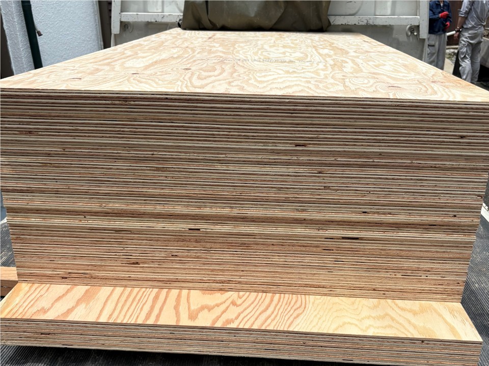下地の補強が完了したら、上から野地板(構造用合板)を張っていきます。
