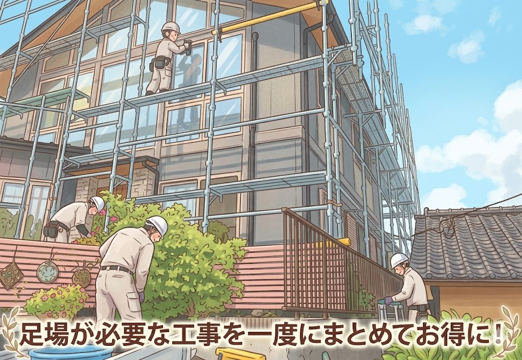 別々に工事を行う場合に比べて足場費用を抑えることができ、効率よくメンテナンスができた点が大きなポイントです。