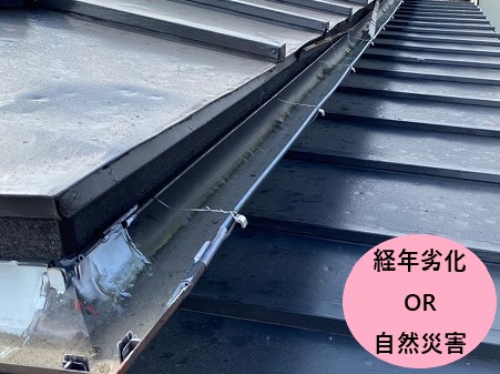雨樋の不具合は、経年劣化だけでなく自然災害が原因となっていることもあります。