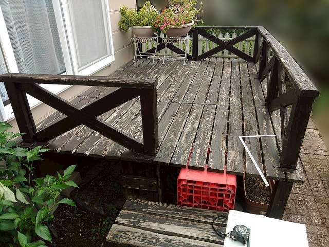 お客様からのご相談は、「ウッドデッキが古くなっているので、きちんと直してほしい」というものでした。