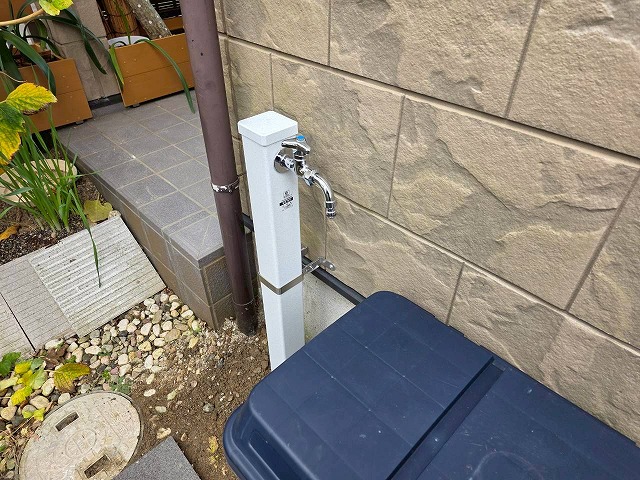 外水栓が新設されたことで、庭で水が使えるようになりました。ガーデニングや掃除などさまざまな場面で便利にお使いいただけます。