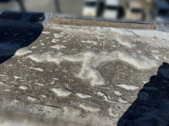 写真を見ていただくと防水部分に膨らんでいる部分が多くあるのが分かるかと思います。この状態は防水層の下の水分が水蒸気になり膨らみが生じている状態になります。